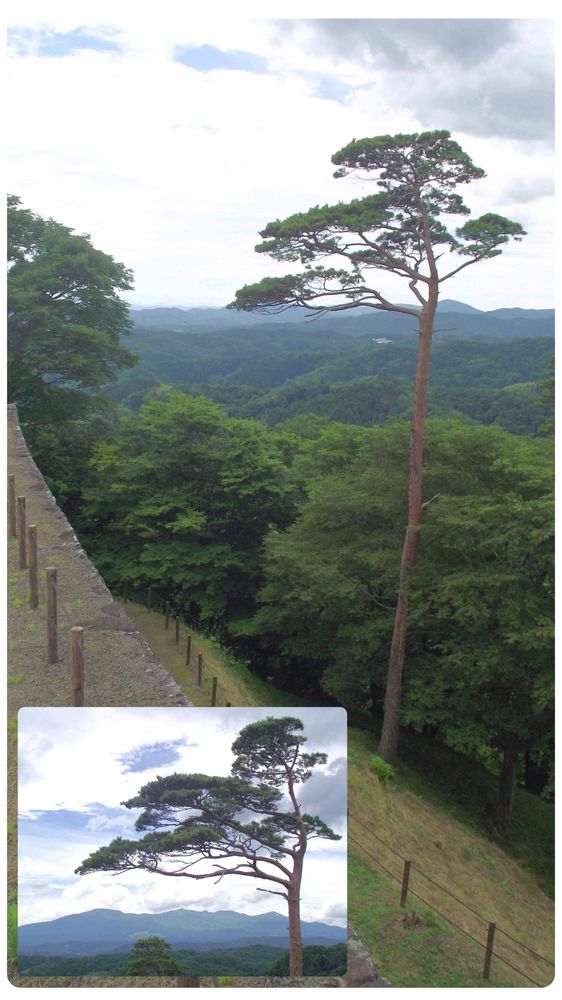 天守台から安達太良山を写すと…自己主張の強い松の木(笑)