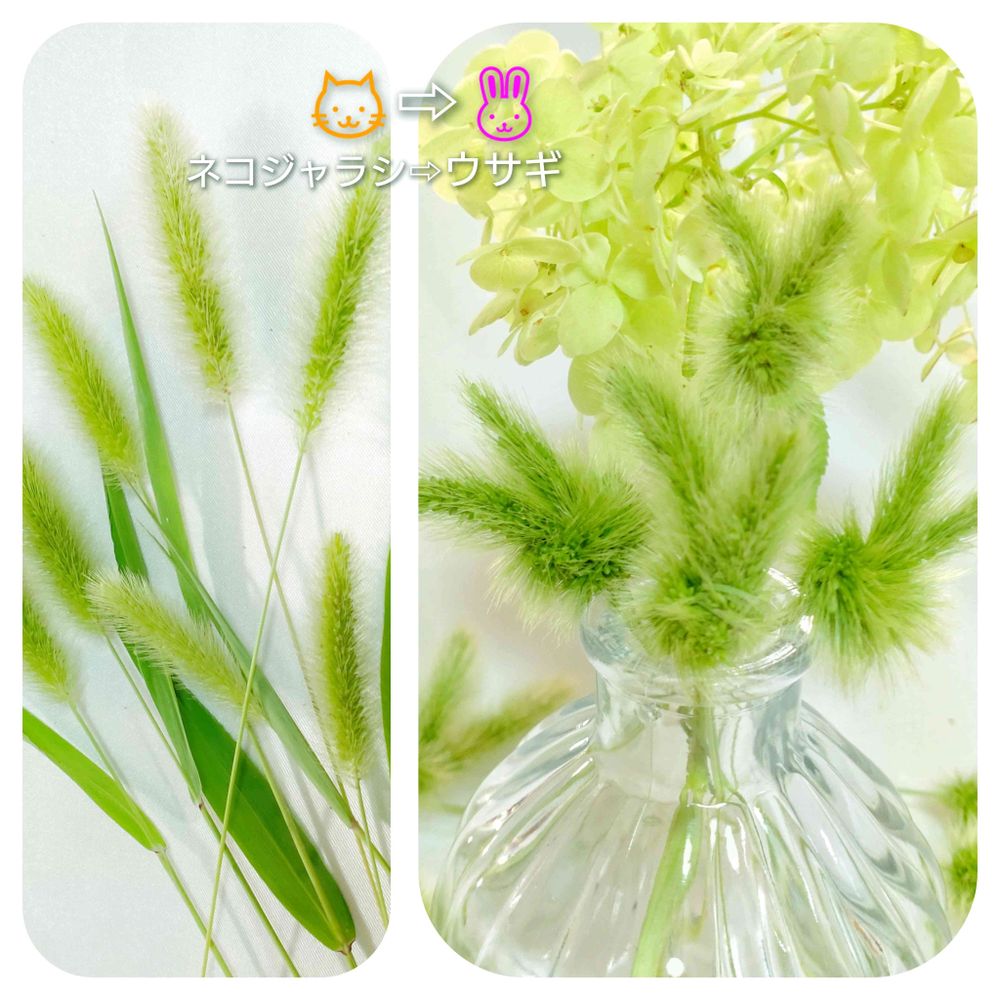ウサギのアレンジはこのまま放置してたら自然とドライフラワーになるので小瓶に挿すだけでも十分きゃわゆいですよ~🐰