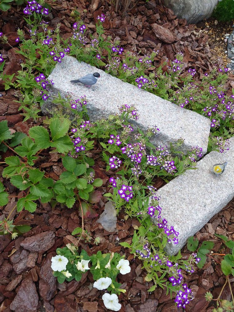 ビジョザクラ、ペチュニア、そして🐦さんオブジェ✨