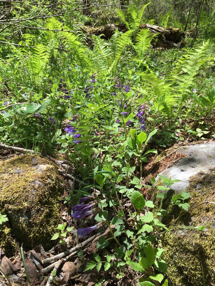 長野で山菜採りの時に見つけた、紫の花。とっても良い香りがするのですが、この花名前がわかりません。葉っぱはミントや、レモンバームのような形をしています。花の形は、タツナミソウに似ています