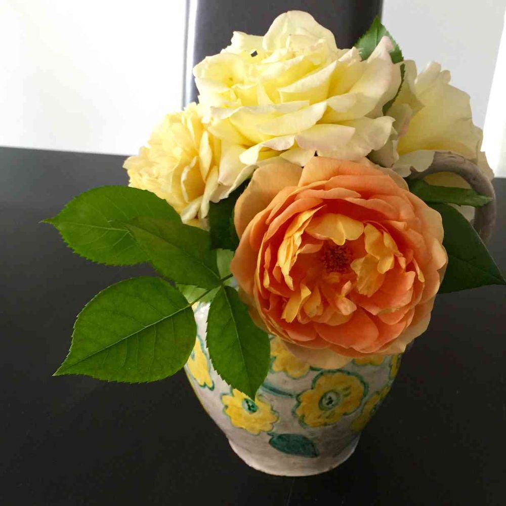 明日から雨は避けきれないので、満開のものを切って活けました。