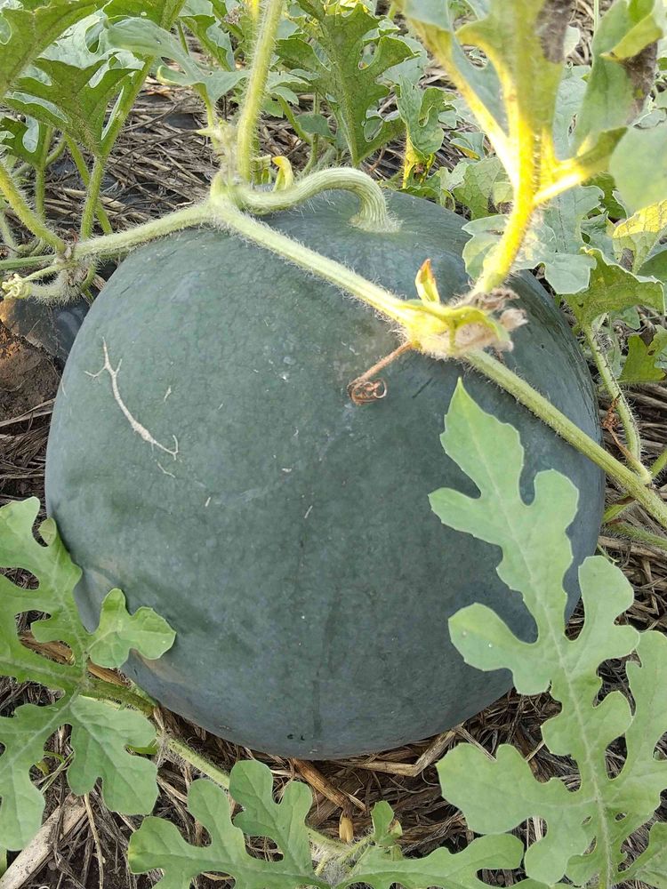 こんにちは。とても大きなスイカが育ってきていますね。これからの収穫が楽しみです。
