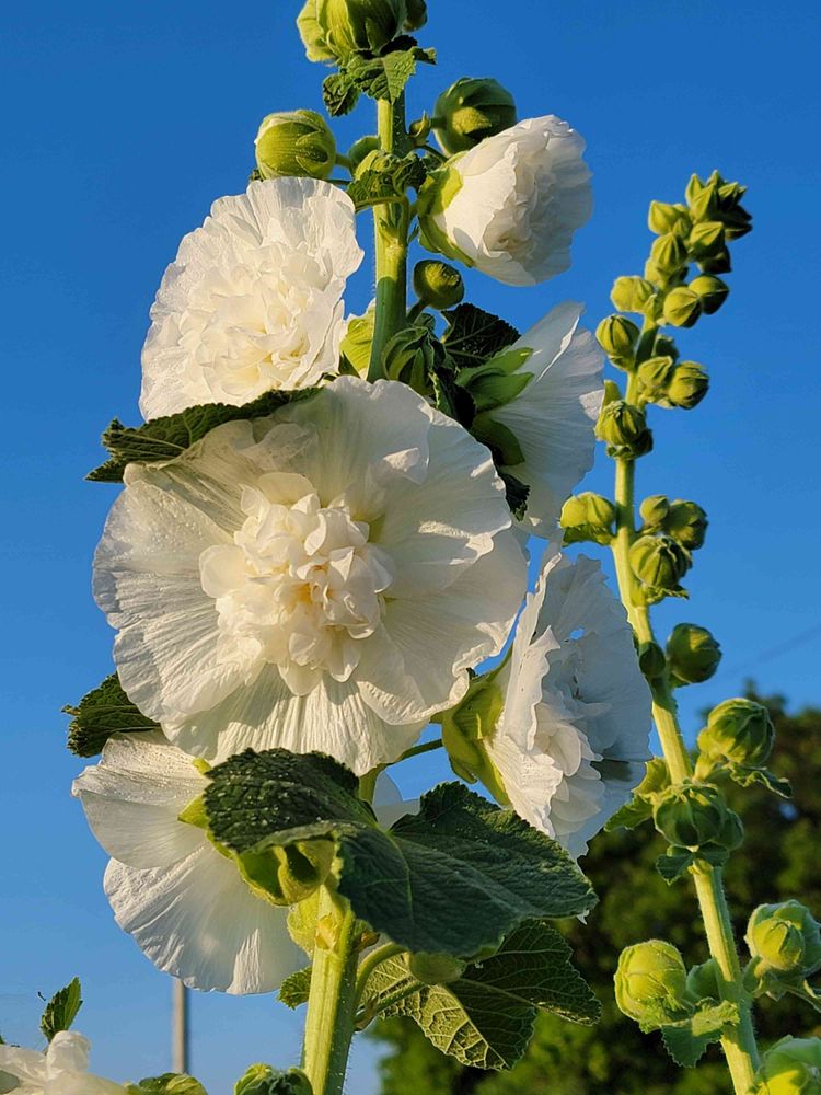 綺麗なお空にまっ🤍なタチアオイさん👀🎶