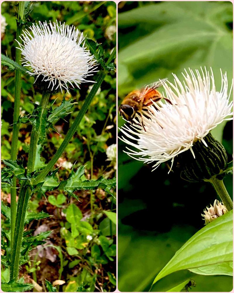 このシロバナノアザミは、野草園の奥の方のフジバカマなどのエリアにほんの数本だけありました。紫色のノアザミは、たくさん生えていましたが、これを見つけた時は嬉しかったですヨ〜🥰👍