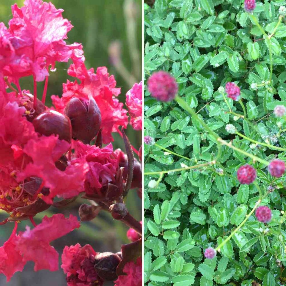 夏の花と秋の花、サルスベリと、吾亦紅が咲き始めました。
