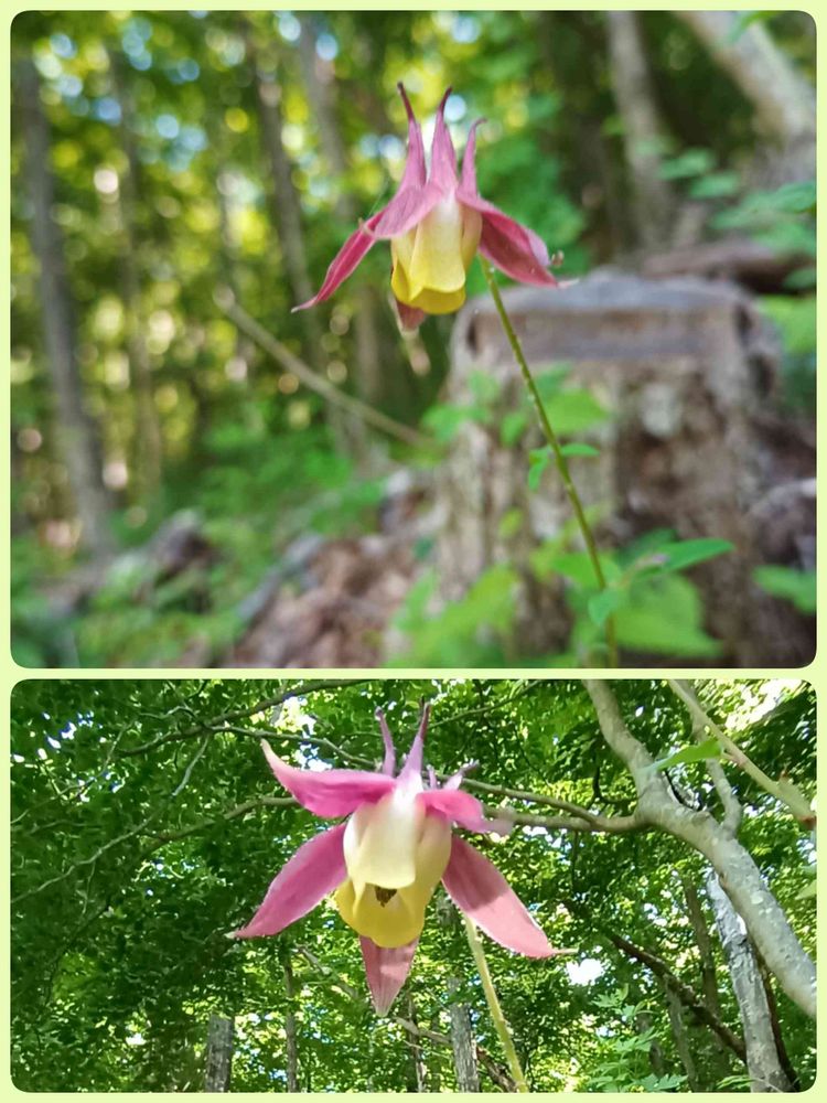 昨日upしたキバナノヤマオダマキはあちこちにたくさん咲いてましたが、このピンク色💓🌿はひとつだけだったので、とくに可愛いく感じました。