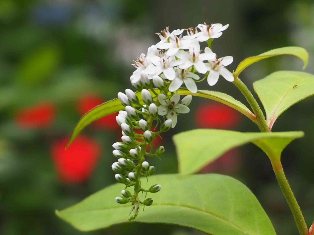 <オカトラノオ(丘虎の尾)> 花姿が虎の尻尾に見えるのか🐅⁉️ 小さな白い花が順序よく開いてます♪
