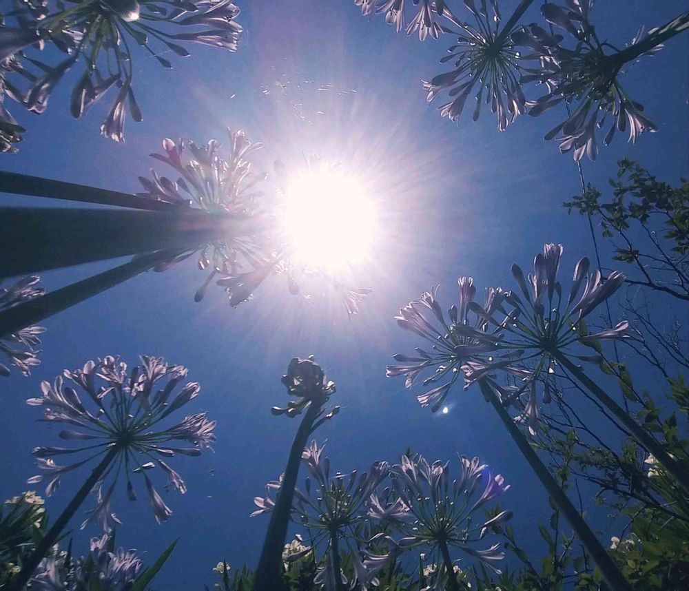 アガパンサスが、この暑さの中でも、一途に太陽に向かって背伸びしてる様子が、すてきでした💕