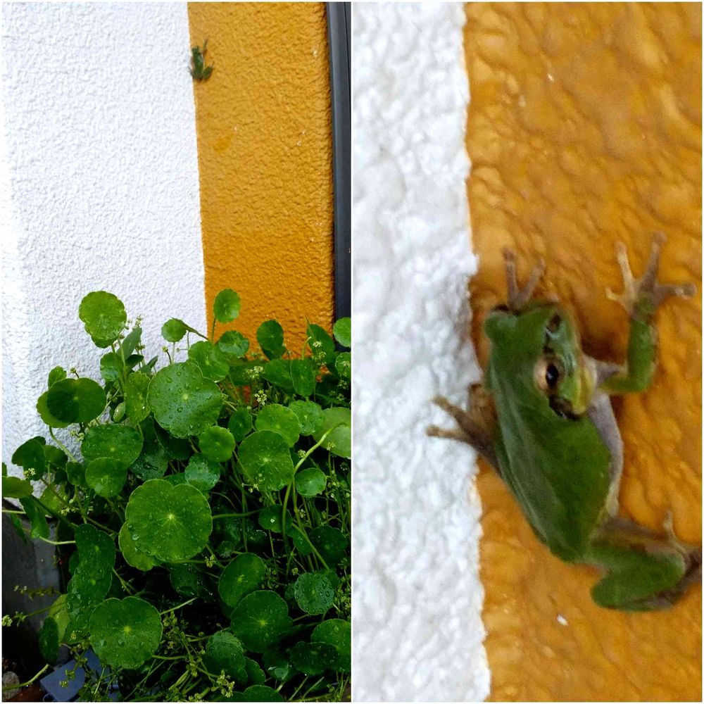 玄関先の『ウォーターマッシュルーム』に潜んでいた蛙ちゃん🐸