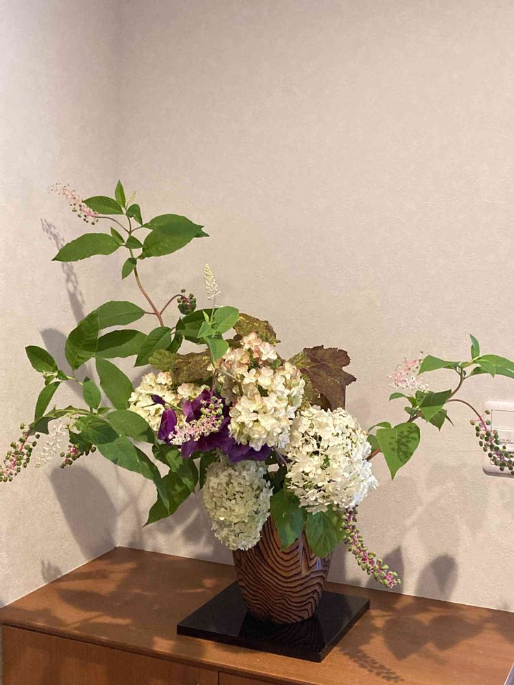 いつもながら素敵な生け方です。ヨウシュヤマゴボウも大活躍ですねぇ✨✨✨