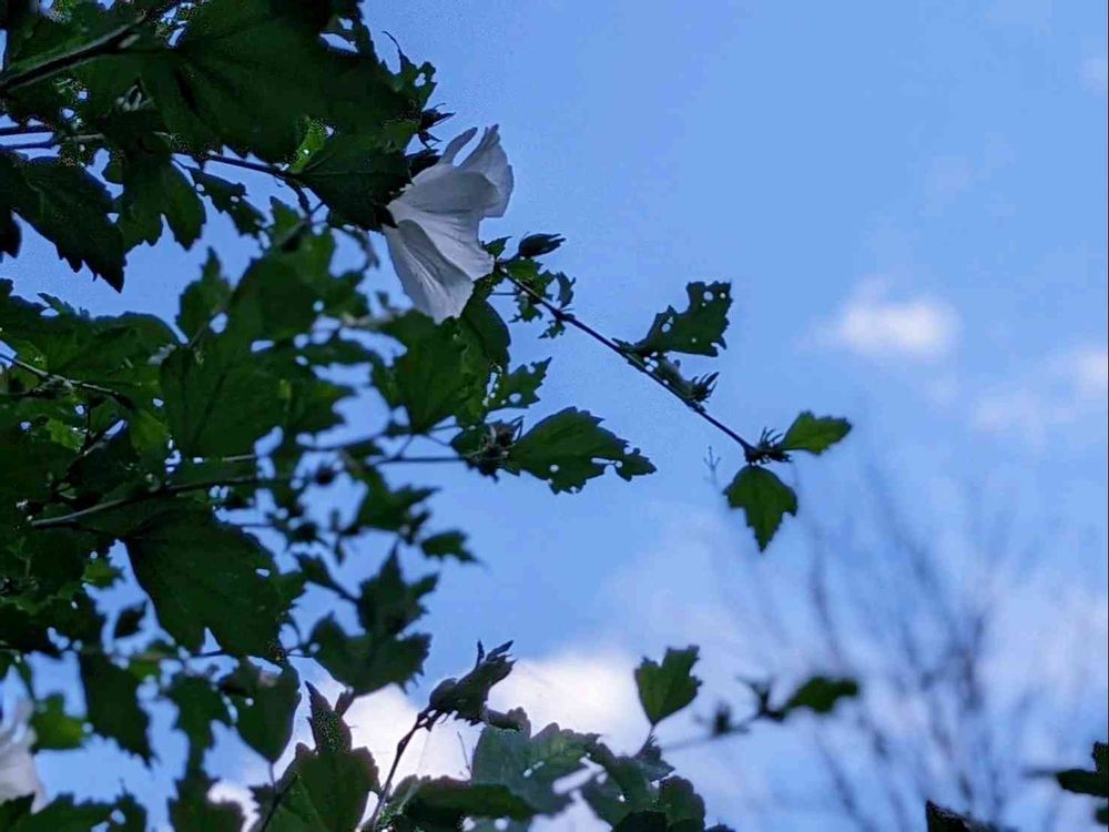 爽やかな青空に木槿の花と白い雲💙🤍☁️ 素敵〜🤗💕
