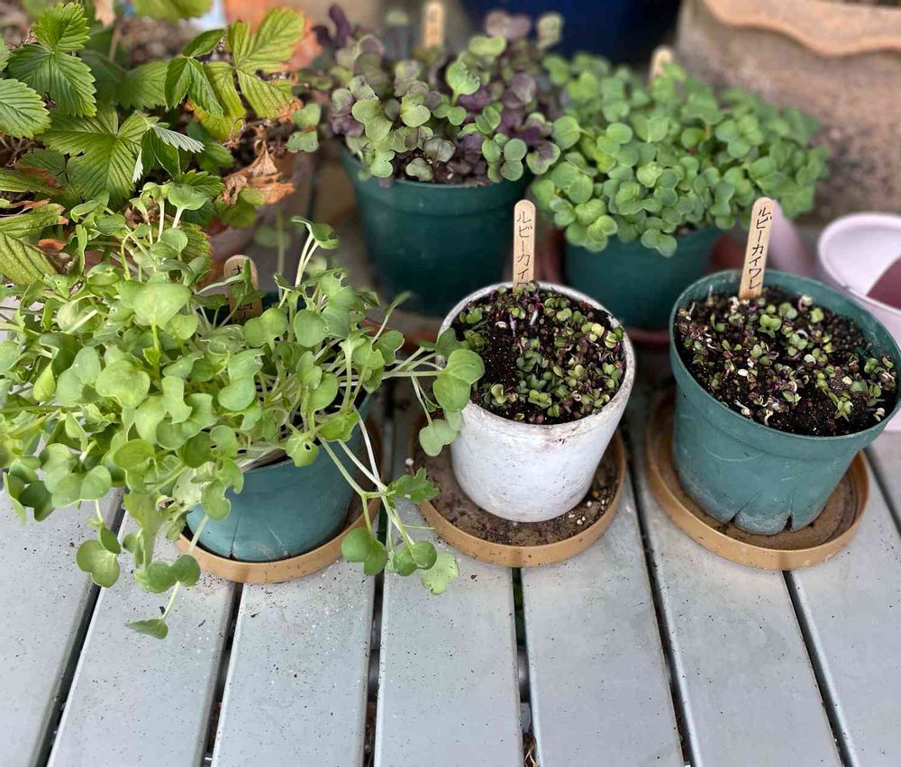 バルコニー/ベランダ,ルビーカイワレ大根栽培,紫カイワレ大根栽培の投稿画像