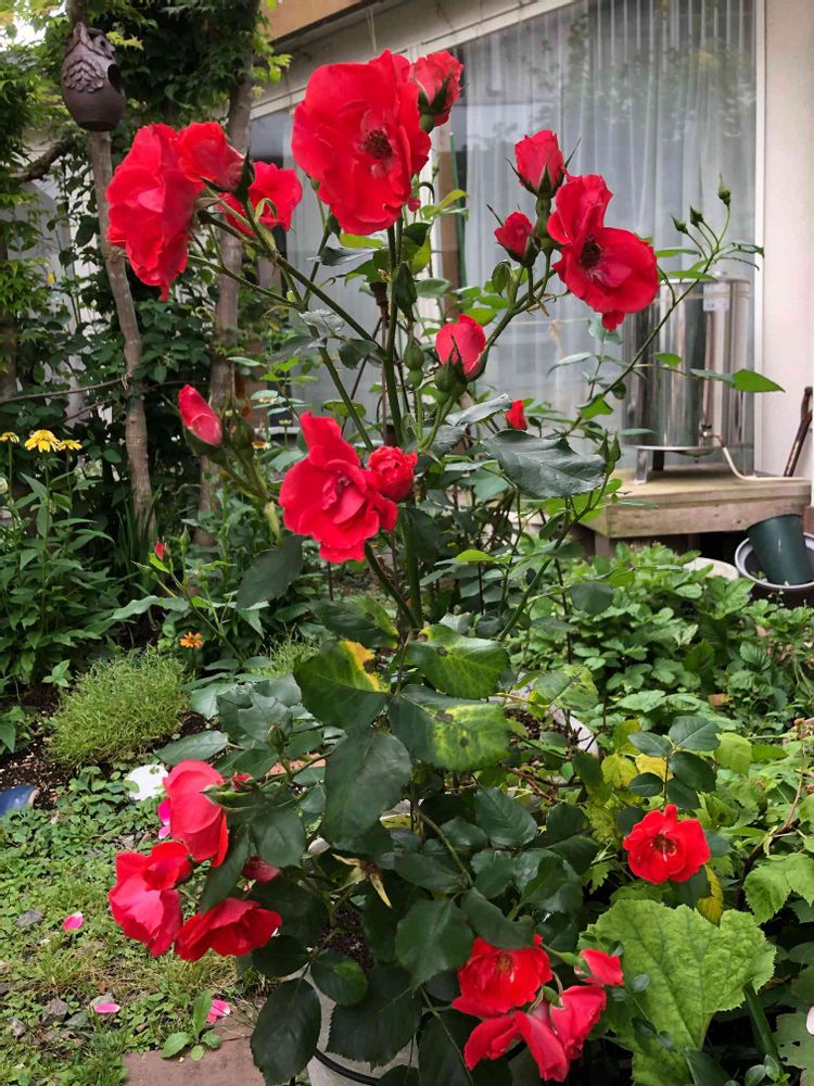 小さな庭,一重のバラ,真紅のバラの投稿画像