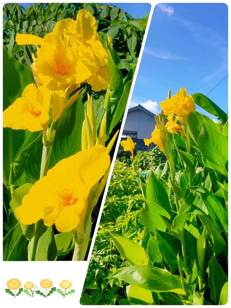 畑,黄色いカンナ,黄色の花の投稿画像