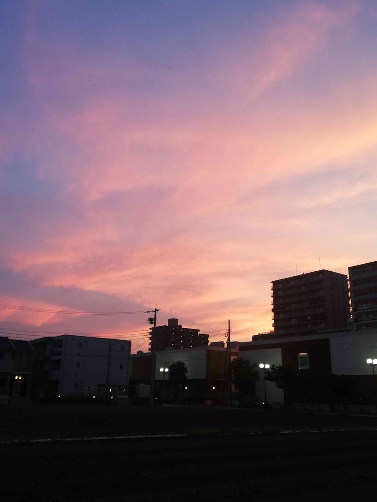 仕事の帰り道で夕焼け🌆を見上なら、今日も仕事が終わったっとため息が出ました😅