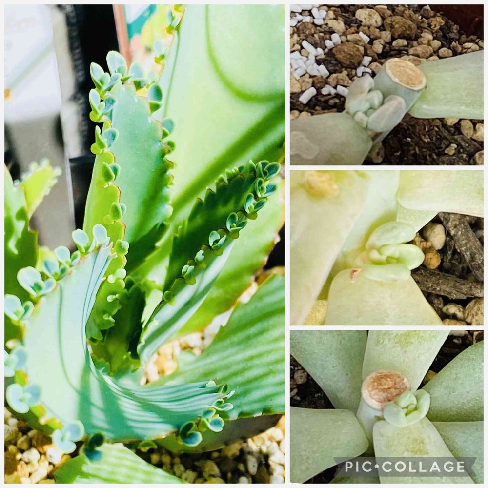 6月上旬にHCでお迎えして徒長していたのですぐ胴切りした多肉ちゃんたちから芽が出てきてウキウキです🥰こっからどーなるんでしょう?😅