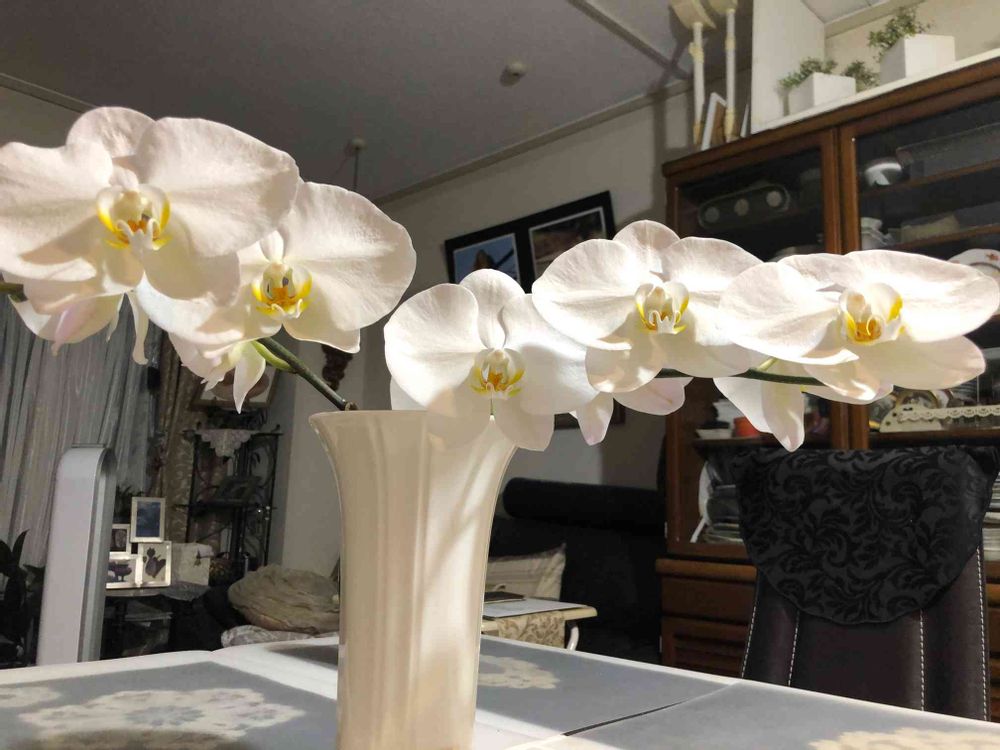 胡蝶蘭などの花が咲いたら、また花を咲かせるために栄養をとられないよう、花枝をカットして、飾るといいそうです。