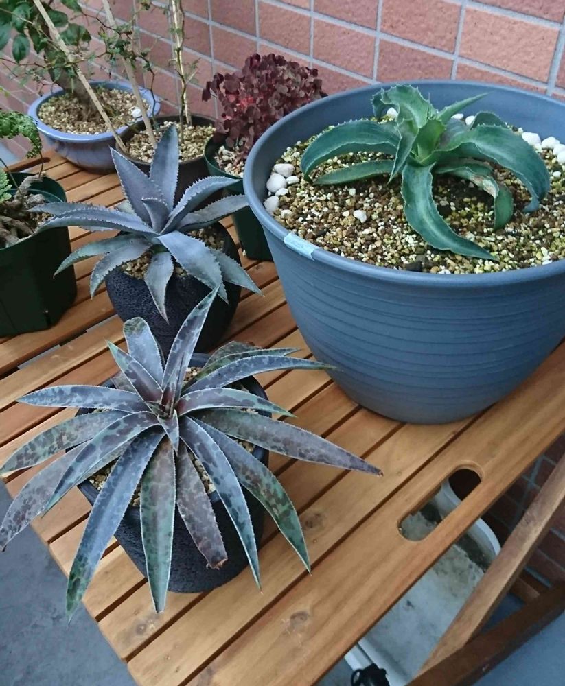 6月の北海道は、寒くて雨続き。当然日照不足です。ベランダの軒下だけど雨ざらしな環境のために皆さん徒長気味なお姿ですな😅