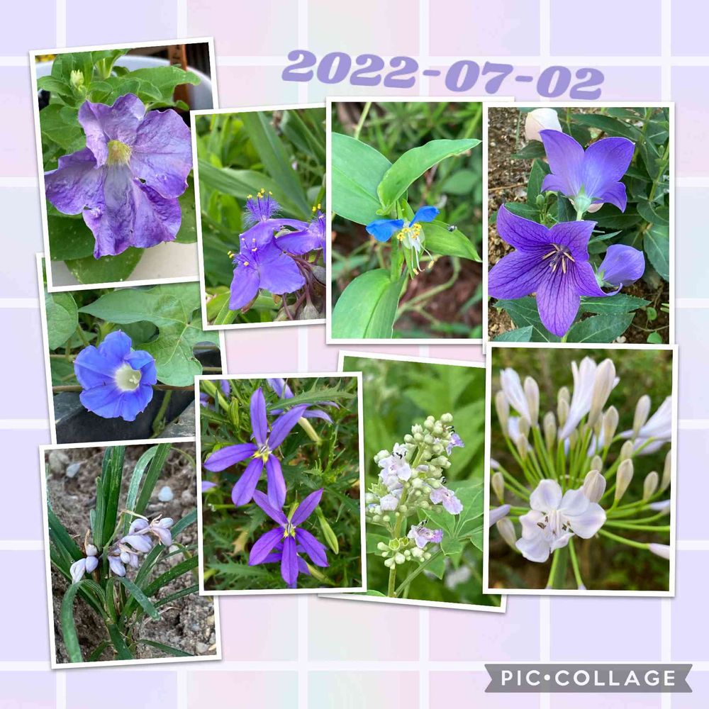 ペチュニア、ムラサキツユクサ、ツユクサ、キキョウ、アガパンサス、チョウセンニンジンボク、イトソマ、リュウノヒゲ、アサガオ