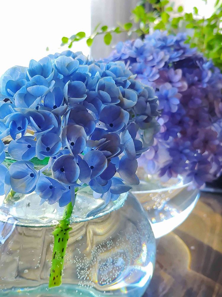窓辺,アジサイ,ガラス容器の投稿画像
