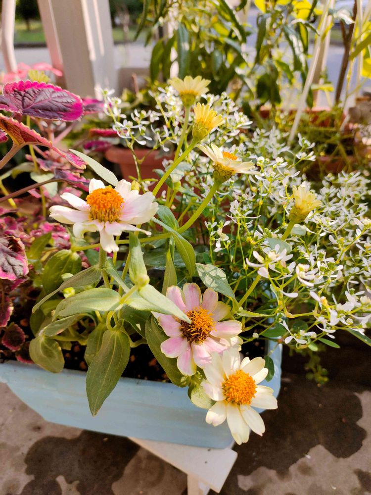 ジニア。真ん中が濃いピンクの模様だったのですが植え付けして間もなく、だんだん色が抜けてきました。