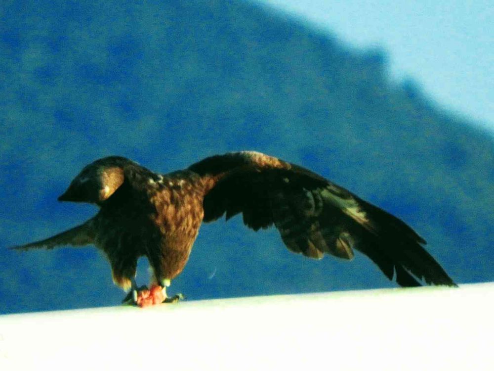 仁保川沿いの橋の欄干で、鳶が何かを捕まえて来て、朝ご飯🥩🐀の最中です。