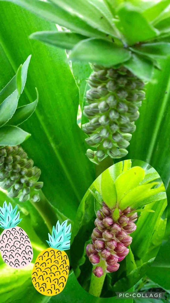 義姉宅のパイナップルリリー(白)と我が家のピンクの🍍(矮性種)