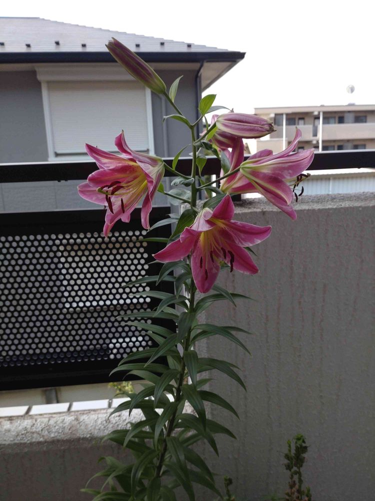 昨年も育てたレッドカサブランカが今年も咲いてくれました。2つの球根のうち1つしか開花しませんでしたが、きれいに咲いてくれました。
