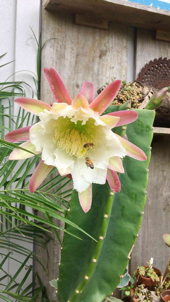 柱サボテンとセイヨウミツバチにほっこり。😊