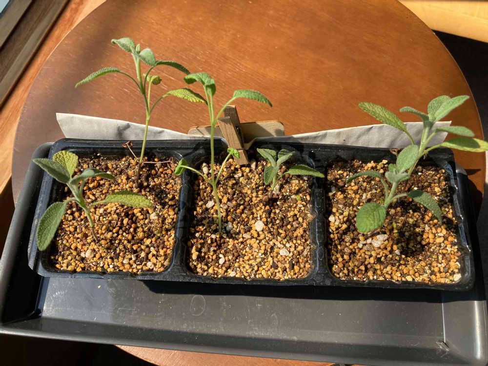 コモンセージをタネから育ててます。発芽のタイミングはバラバラで、生育も個体差が大きいです。