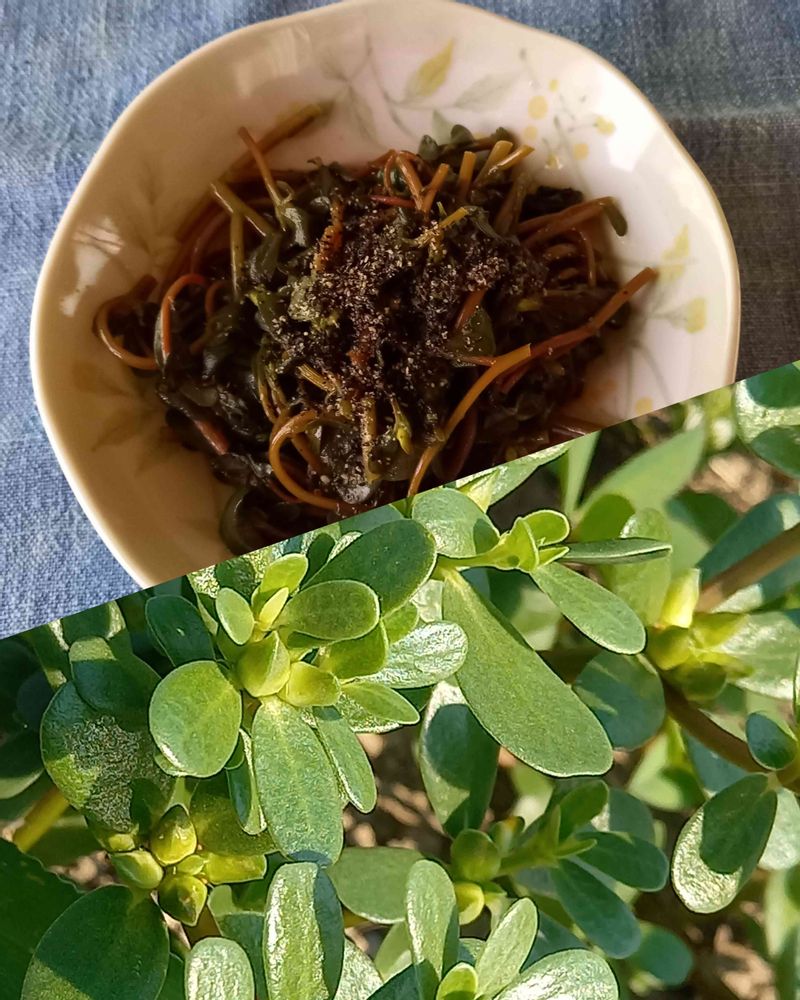 GSの投稿でスベリヒユは食べられると知りました。今朝睡蓮を見に行く途中で見つけたので採取しました。