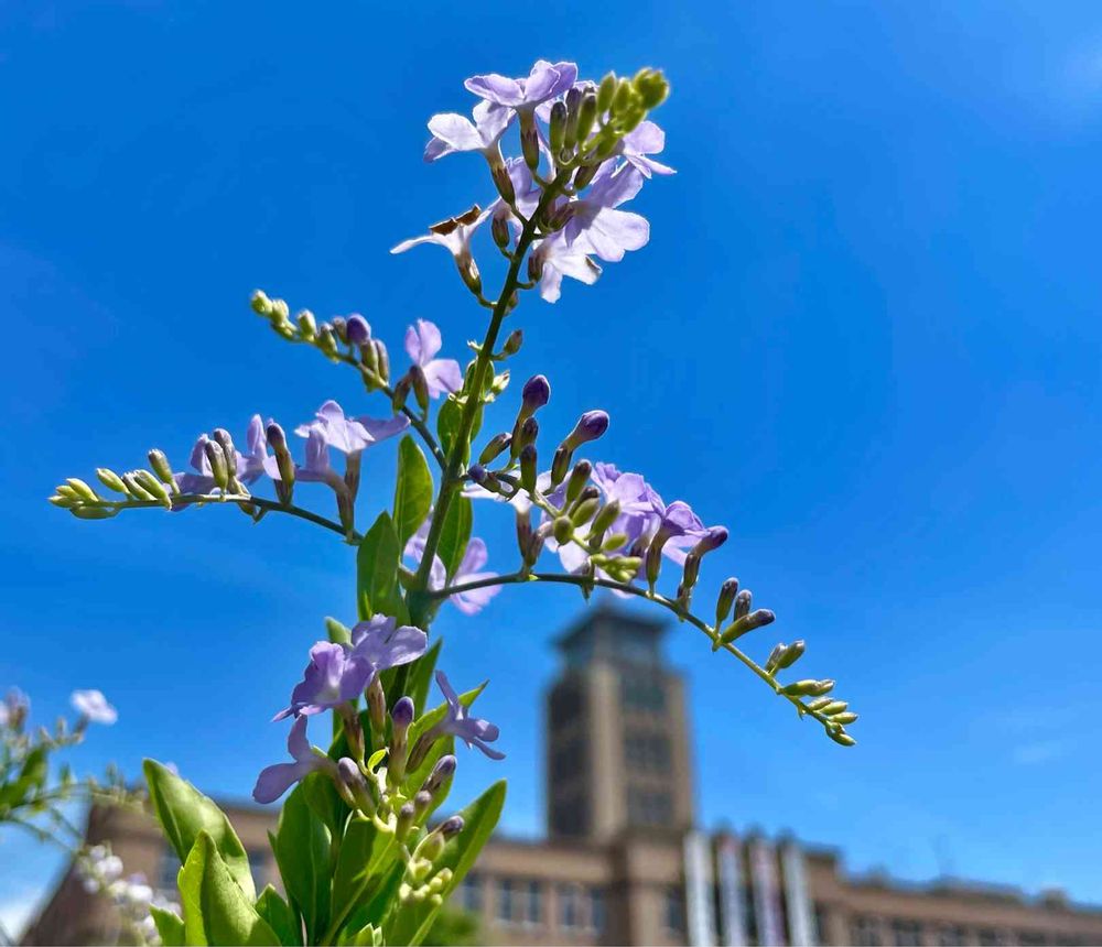 青空に、光を浴びた花がくっきりと引き立って綺麗ですね〜!