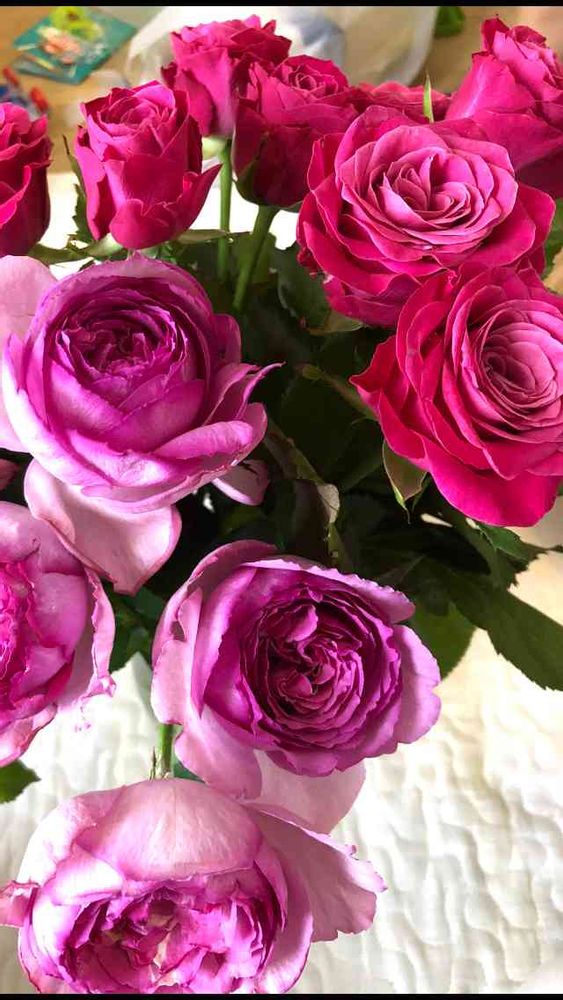 🌹イブピアッチェとピンクの薔薇🌹娘から挿し木してと貰いました😊とても良い香りがして繊細です。次の日なんだかぐったりしています。涼しくしてもこの暑さで車で🚗運ぶ道中参っちゃってます。😵🌹🌹