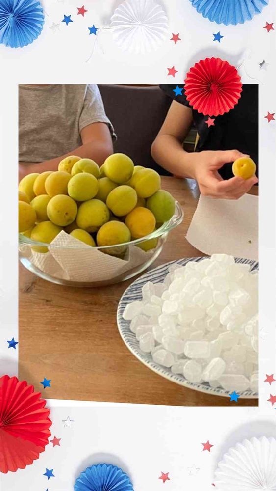 綺麗な梅を嬉しいな🎶娘達も🏠に帰り早速 梅ジュース作りに内孫初体験👍嬉しそうな顔の写メ