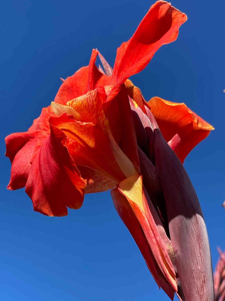 @Yumiko (California U.S.A) SAN👩 Dear Ms Yumiko.😊😄 Whao !😲✌️ It's so nice photo,so Great!👌 The Canna flowers are very very bright red against the blue blue sky ! 🌺♥️💙🤗🌞 Have a nice July's first weekend . 🤭😊😄 See you again !🧑👋