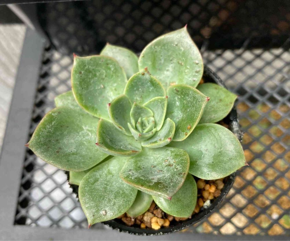 写真は…名前のわからないエケベリアなのですが、ここ数日、表面にボツボツができてきました。