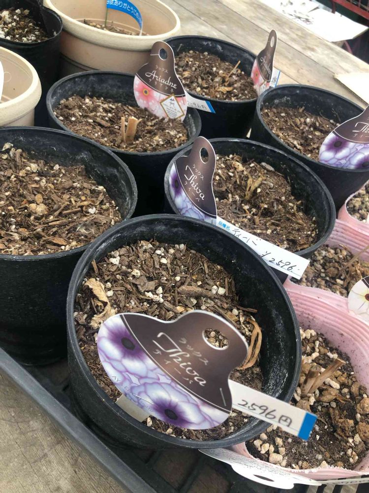 おはようございます☔️こんな時期に、大量のラックスラナンキュラスを15鉢購入して来ました💨9月になったら、円形庭園に植え付けます😊