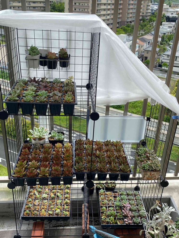 という事で、ベランダタニラーは東側のベランダに簡易多肉棚を作りました。
