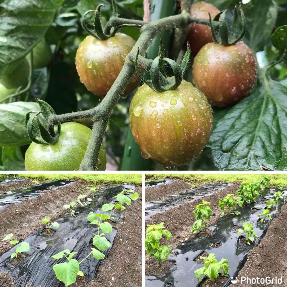 早朝の野良仕事は、2週間近くほとんど降らなかった中、恵みの雨が期待できるという事で、2回目のキュウリ🥒苗🌱と、こぼれ種から大量発生の大葉苗🌱を植え付けた💪。