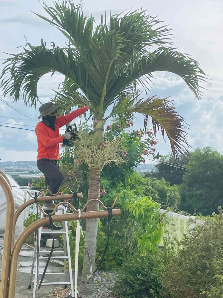 大きなヤシの木も虫にやられ、どんどん増えてきて、色々試しましたが、ワンちゃんがいるので農薬だけは使いたくない為、泣く泣く伐採😭。