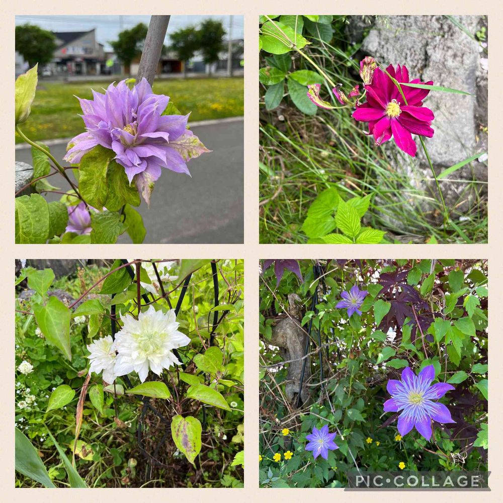 クレマチスが満開です。右上のは花が完全に開く前は赤と白が混ざっていて、母のお気に入りのうちの1つです。うちのクレマチスは紫と白が多く、赤はなかなか咲きません😅