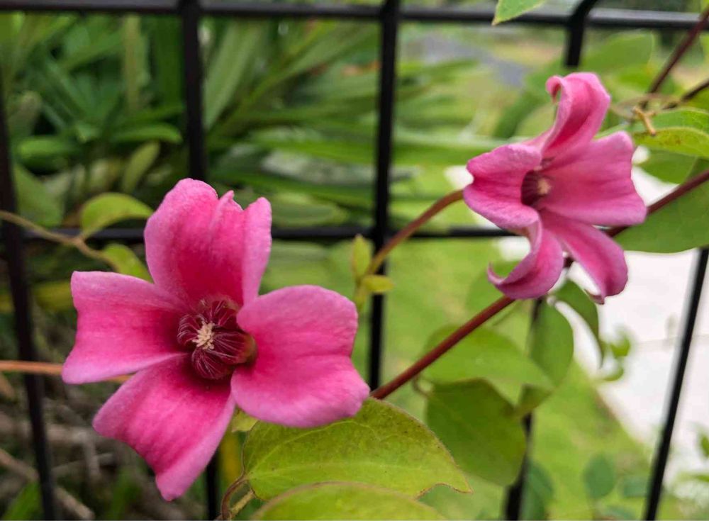春に植えたクレマチス ダッチェス オブ アルバニーが咲きました。