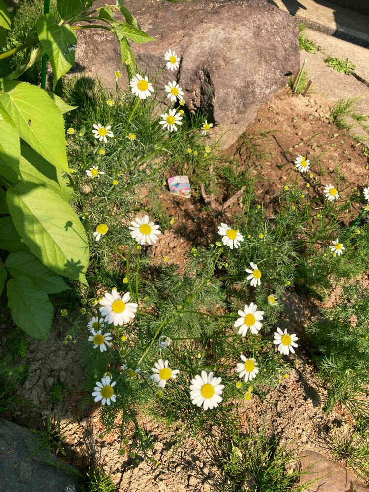 写真はこの前実家に帰った時に摘んだジャーマンカモミール✨