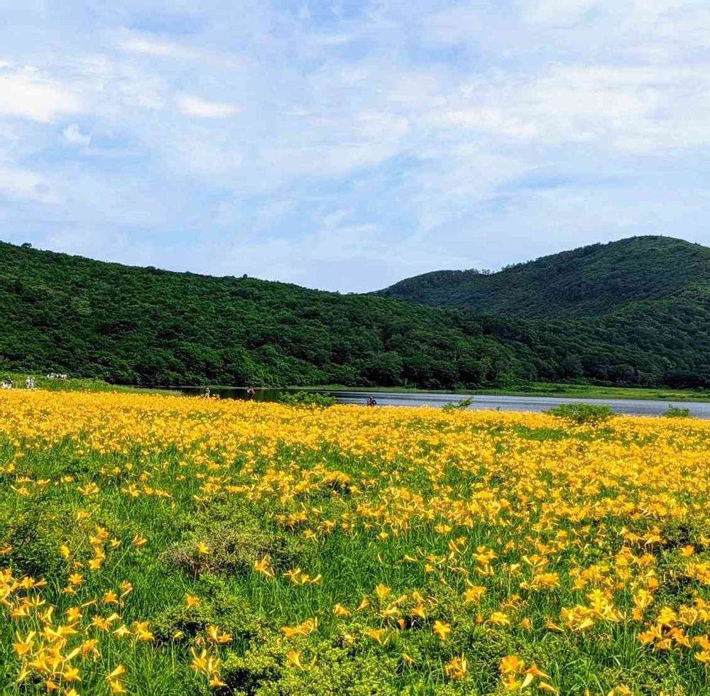 ニッコウキスゲが満開で黄色い絨毯のよう💛💛💛