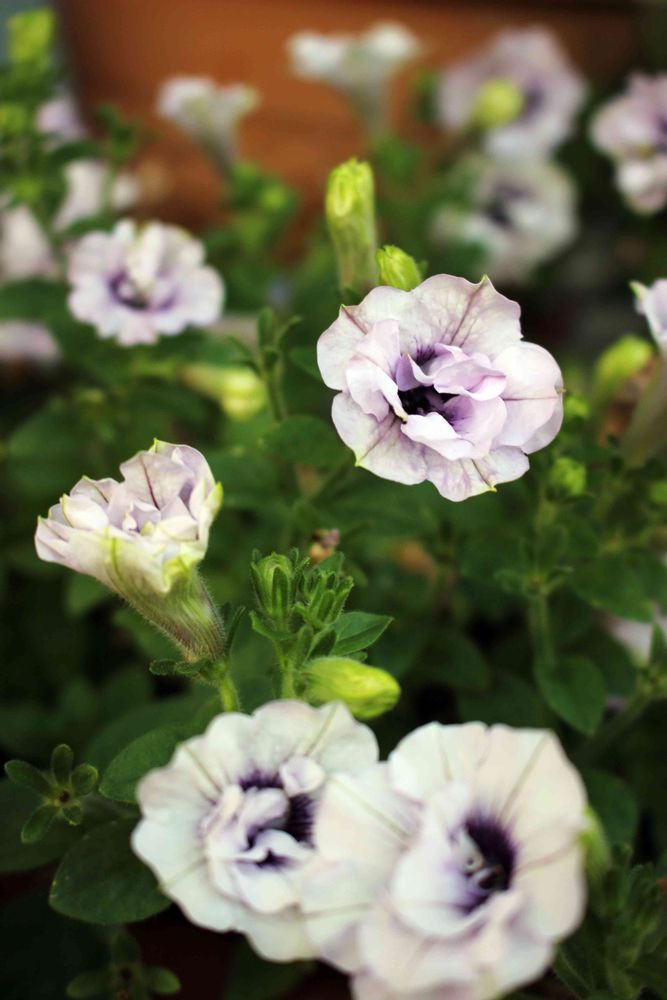 紫色のかわいいペチュニア、中心の濃い紫と周りの淡い薄紫色がとても可愛いです🍇