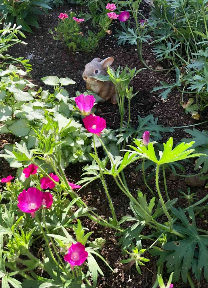 😊時々花友🌸さんのpicでウチと同じ置物🐰を見つけると嬉しくなります。本物🐰🐰も暑さにはぁはぁ言いながら頑張ってますヨ💕