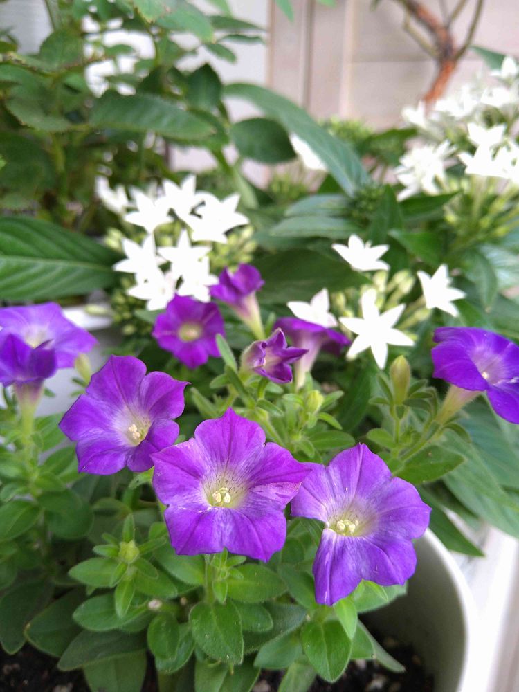 PWのスーパーチュニア、ブルーモーンプラスお迎えして咲き始めました。
