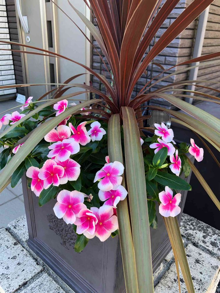 玄関,コルジリネ レッドスター,ビンカ ニルバーナカスケード ピンクスプラッシュの投稿画像