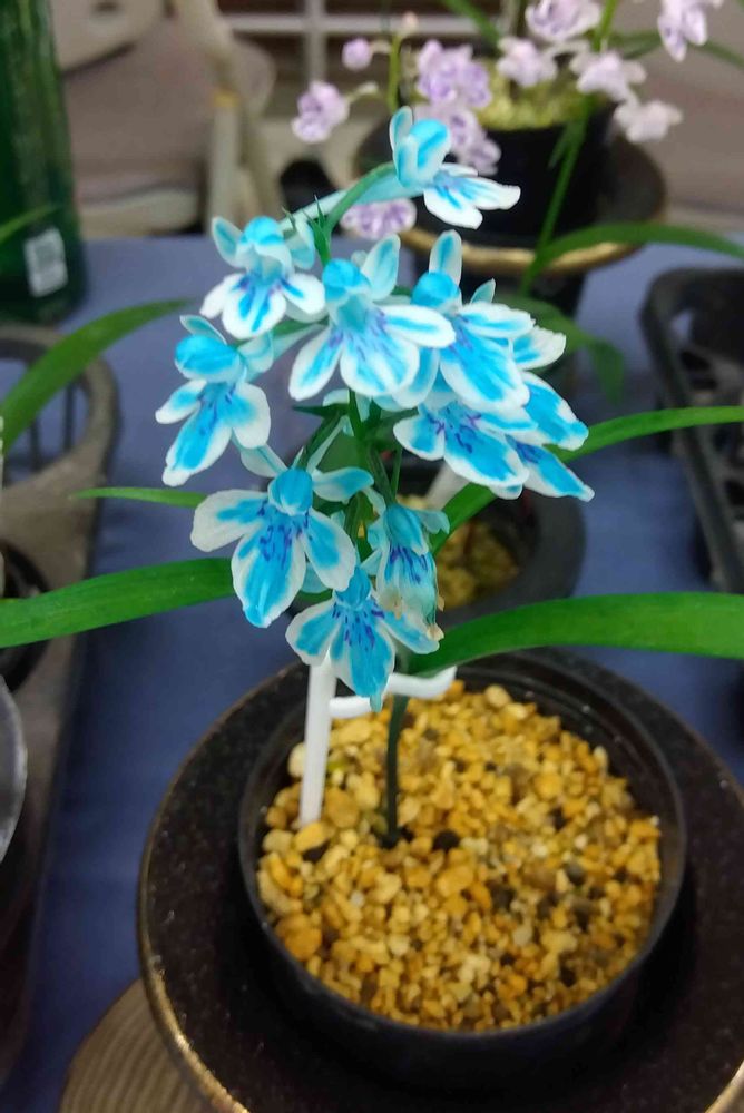 蘭って青い色を発色する遺伝的を持ってないと聞いたことがあり、蘭展に行っても青花はほんとに少ない中、この花色✨