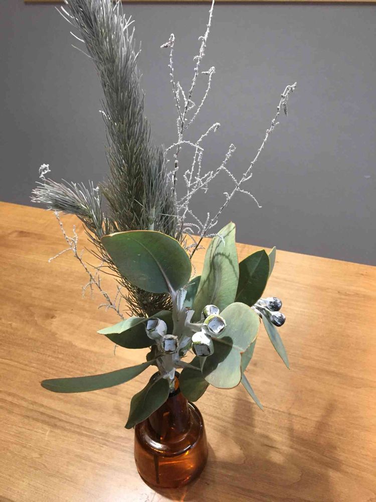 お花屋さんに行ったらユーカリの実が売っていたので買ったのですが、他の2種類の花の名前を聞くのを忘れちゃいました💦